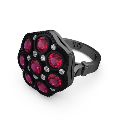 Rodolit garnet ve elmas 925 ayar siyah rodyum kaplama gümüş yüzük (0.3 karat)