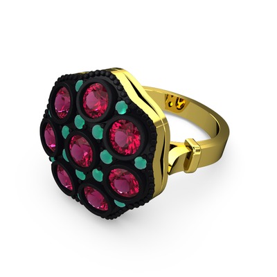 Rodolit garnet ve kök zümrüt 925 ayar altın kaplama gümüş yüzük