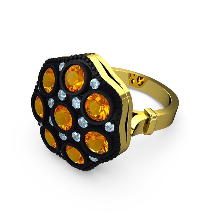 Sitrin ve akuamarin 8 ayar altın yüzük