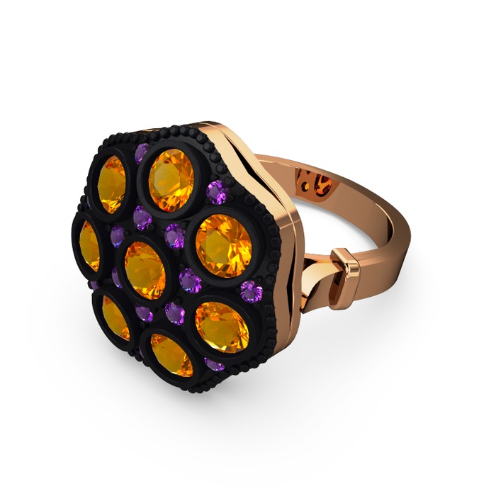 Sitrin ve ametist 925 ayar rose altın kaplama gümüş yüzük