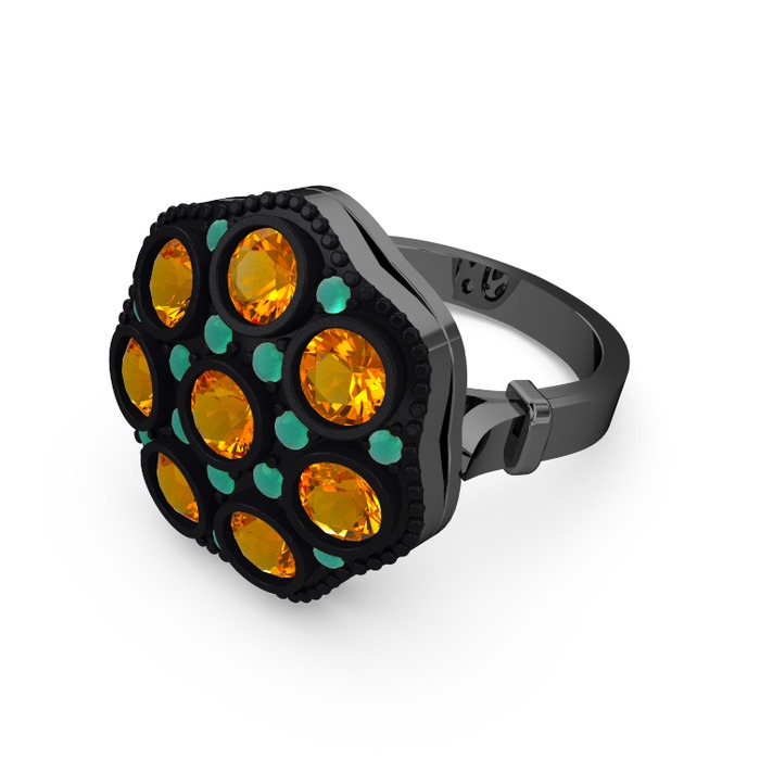 Sitrin ve kök zümrüt 925 ayar siyah rodyum kaplama gümüş yüzük