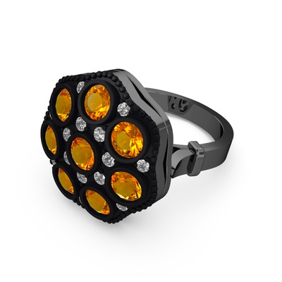 Sitrin ve pırlanta 925 ayar siyah rodyum kaplama gümüş yüzük (0.3 karat)