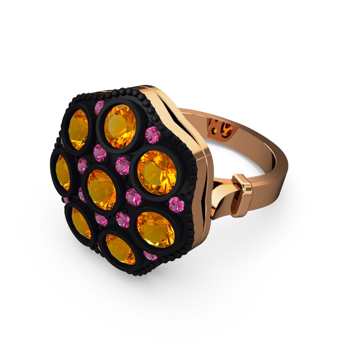 Sitrin ve rodolit garnet 8 ayar rose altın yüzük