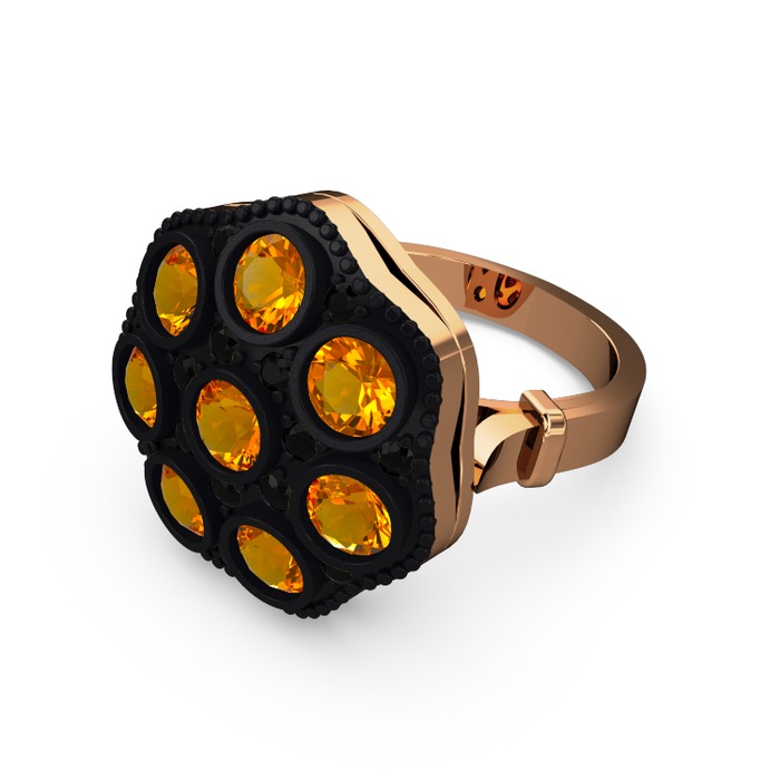Sitrin ve siyah zirkon 925 ayar rose altın kaplama gümüş yüzük