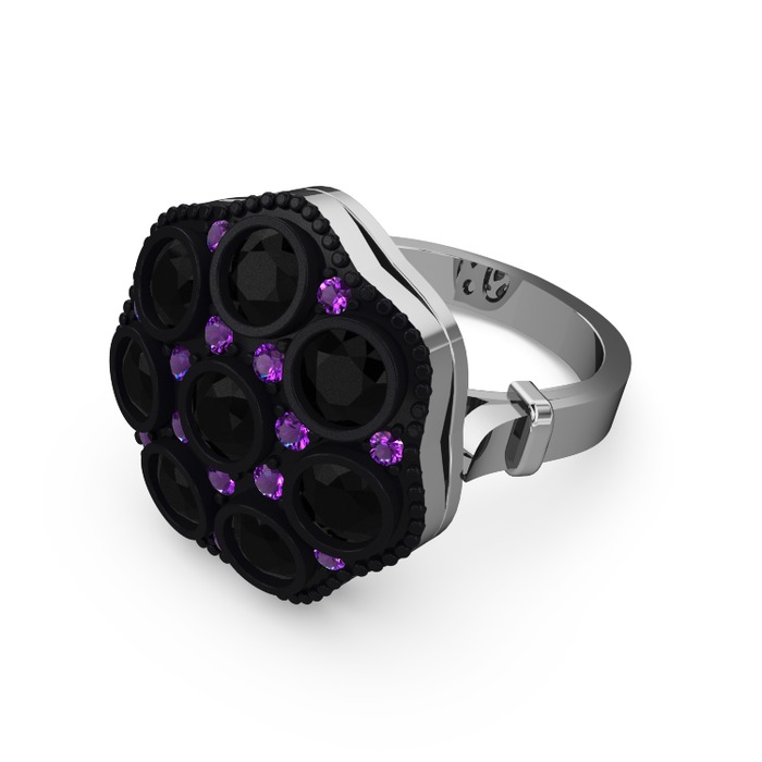 Siyah zirkon ve ametist 14 ayar beyaz altın yüzük