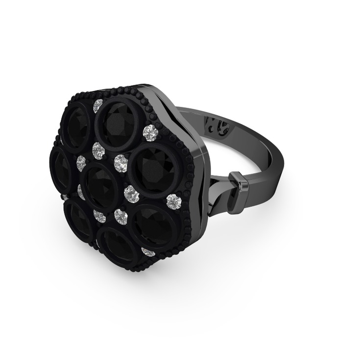Siyah zirkon ve elmas 925 ayar siyah rodyum kaplama gümüş yüzük (0.3 karat)