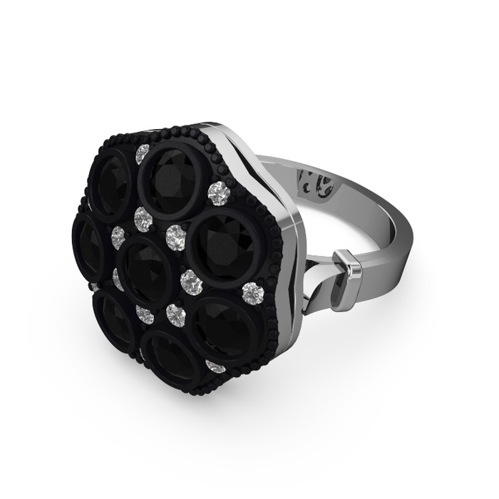Siyah zirkon ve pırlanta 18 ayar beyaz altın yüzük (0.3 karat)