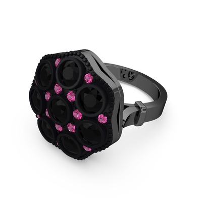 Siyah zirkon ve rodolit garnet 925 ayar siyah rodyum kaplama gümüş yüzük
