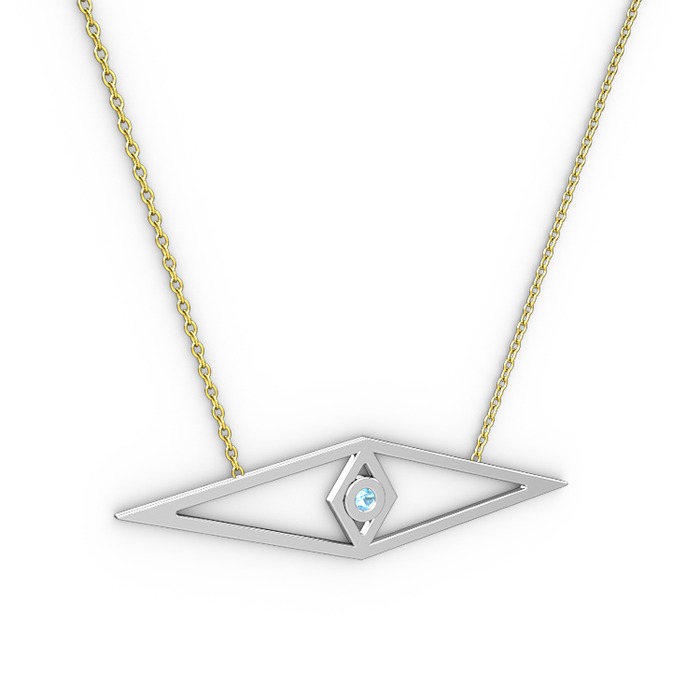 Akuamarin 8 ayar beyaz altın kolye (40 cm gümüş rolo zincir)