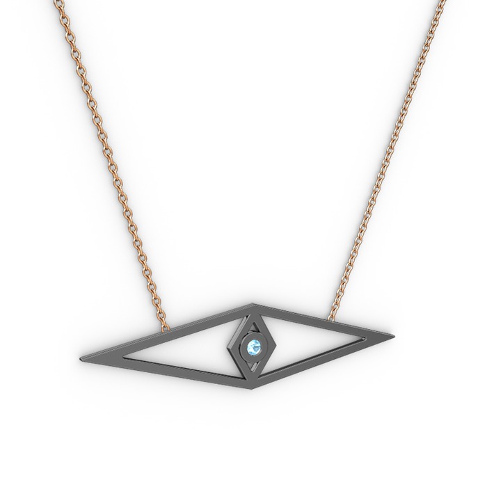 Akuamarin 925 ayar siyah rodyum kaplama gümüş kolye (40 cm rose altın rolo zincir)