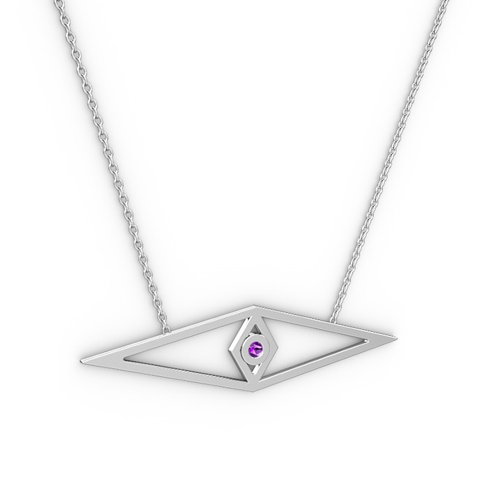 Ametist 14 ayar beyaz altın kolye (40 cm beyaz altın rolo zincir)