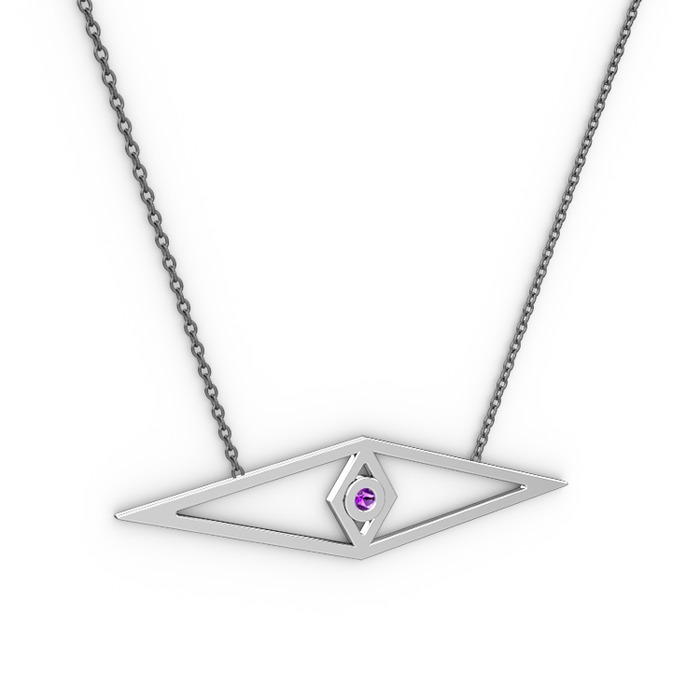 Ametist 18 ayar beyaz altın kolye (40 cm gümüş rolo zincir)