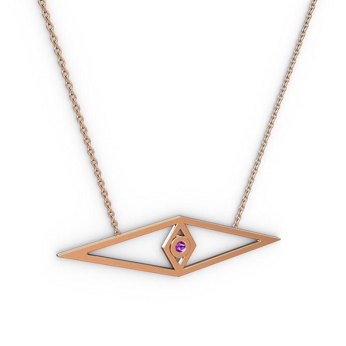 Ametist 925 ayar rose altın kaplama gümüş kolye (40 cm gümüş rolo zincir)