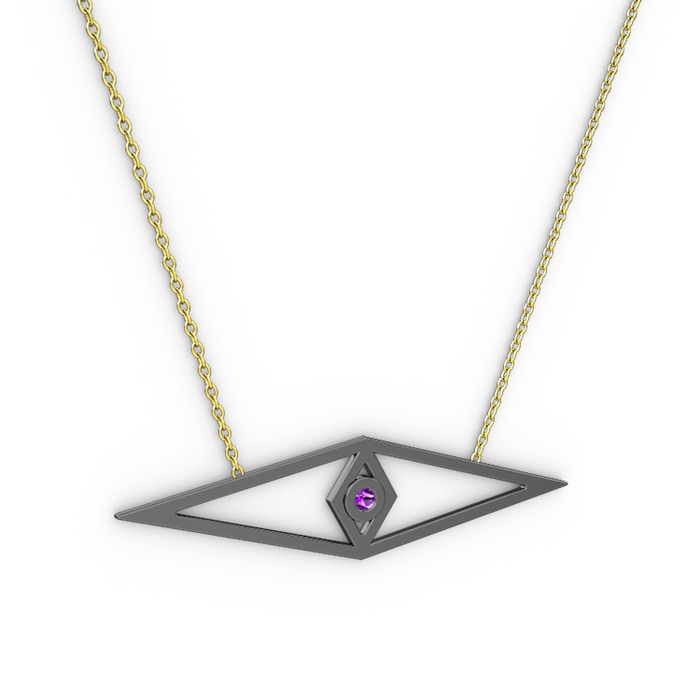 Ametist 925 ayar siyah rodyum kaplama gümüş kolye (40 cm altın rolo zincir)