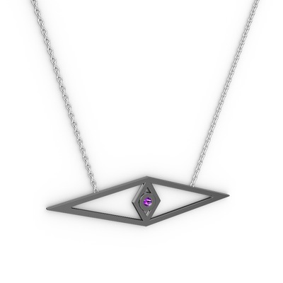Ametist 925 ayar siyah rodyum kaplama gümüş kolye (40 cm gümüş rolo zincir)
