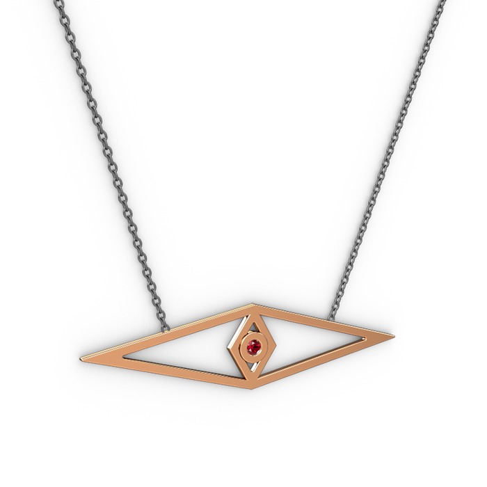 Garnet 925 ayar rose altın kaplama gümüş kolye (40 cm gümüş rolo zincir)