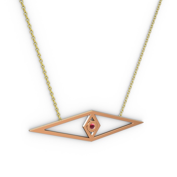 Kök yakut 8 ayar rose altın kolye (40 cm altın rolo zincir)