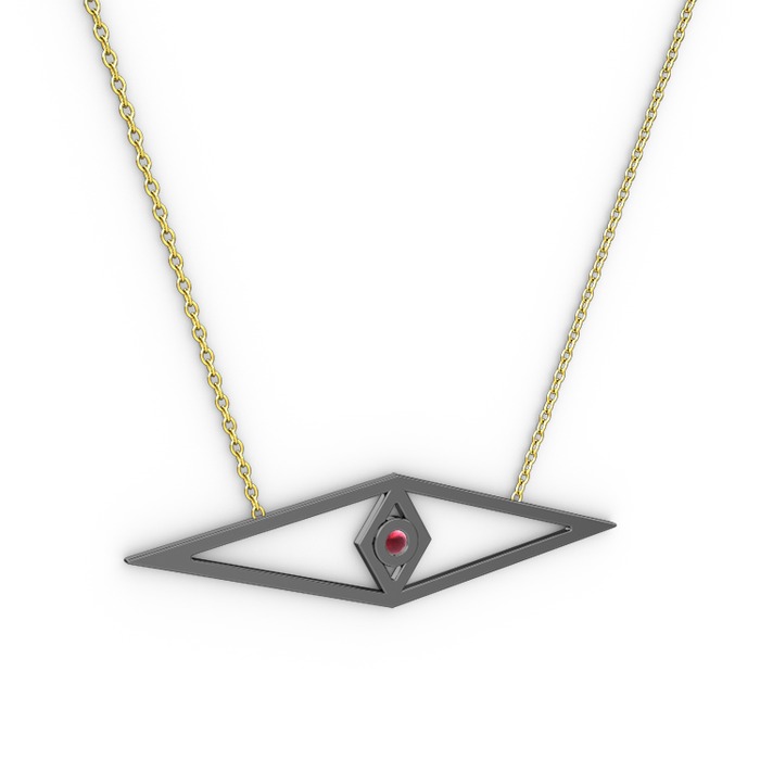 Kök yakut 925 ayar siyah rodyum kaplama gümüş kolye (40 cm altın rolo zincir)