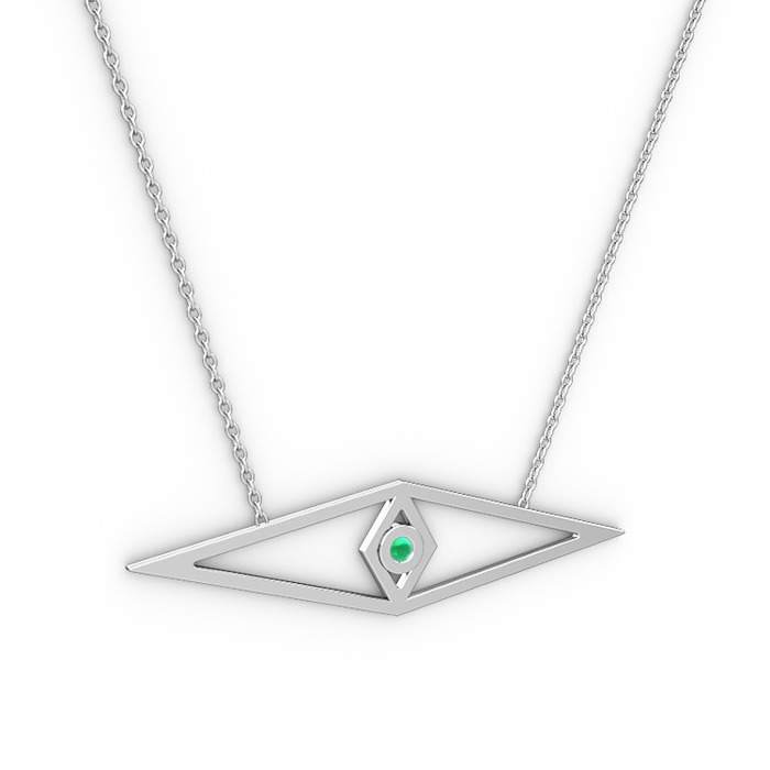 Kök zümrüt 18 ayar beyaz altın kolye (40 cm gümüş rolo zincir)