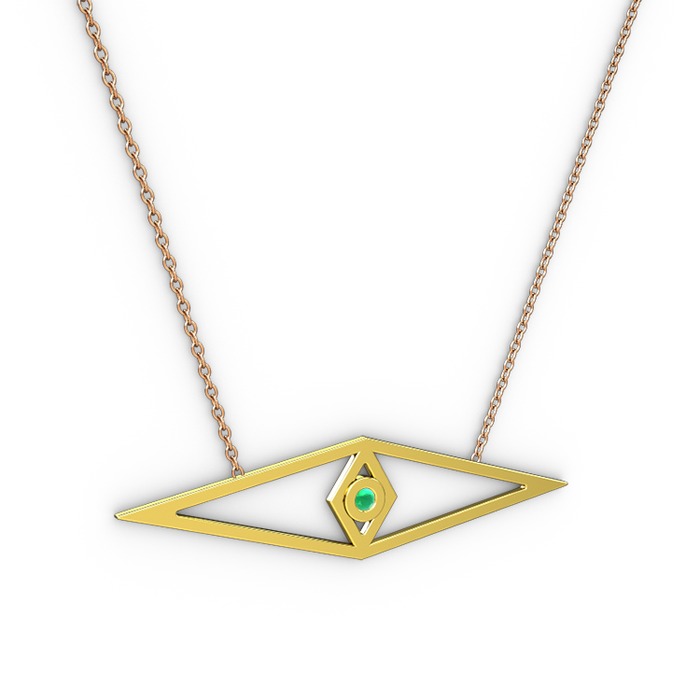 Kök zümrüt 925 ayar altın kaplama gümüş kolye (40 cm gümüş rolo zincir)