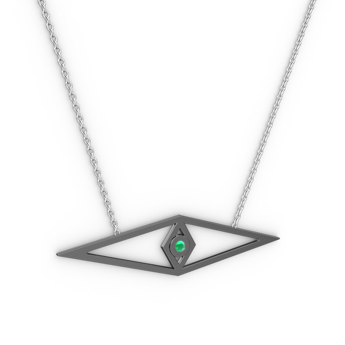 Kök zümrüt 925 ayar siyah rodyum kaplama gümüş kolye (40 cm beyaz altın rolo zincir)