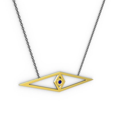 Lab safir 8 ayar altın kolye (40 cm gümüş rolo zincir)