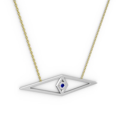 Lab safir 8 ayar beyaz altın kolye (40 cm altın rolo zincir)