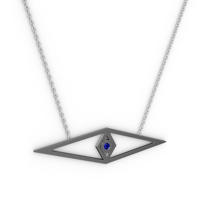 Lab safir 925 ayar siyah rodyum kaplama gümüş kolye (40 cm gümüş rolo zincir)