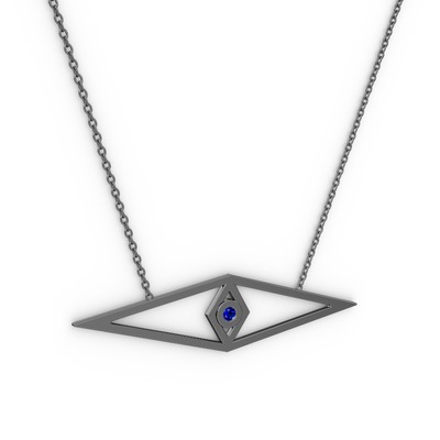 Lab safir 925 ayar siyah rodyum kaplama gümüş kolye (40 cm gümüş rolo zincir)