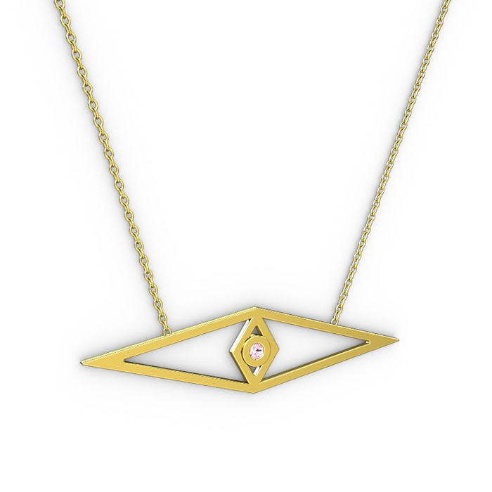 Pembe kuvars 18 ayar altın kolye (40 cm altın rolo zincir)