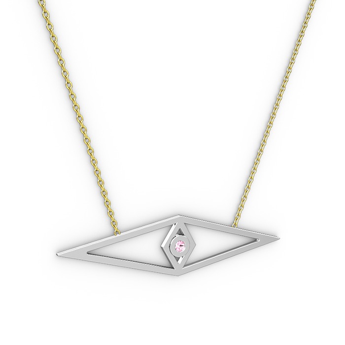 Pembe kuvars 18 ayar beyaz altın kolye (40 cm altın rolo zincir)