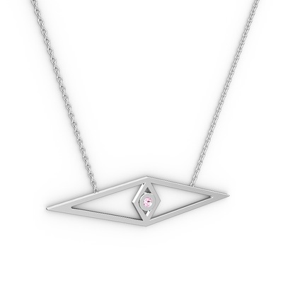 Pembe kuvars 18 ayar beyaz altın kolye (40 cm beyaz altın rolo zincir)