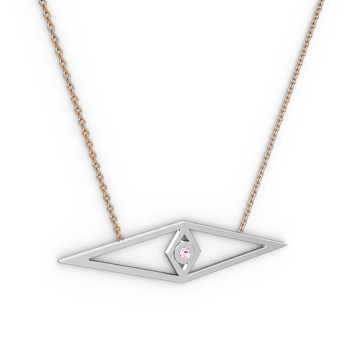 Pembe kuvars 18 ayar beyaz altın kolye (40 cm rose altın rolo zincir)