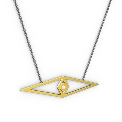 Pembe kuvars 8 ayar altın kolye (40 cm gümüş rolo zincir)