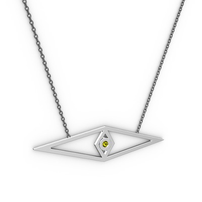 Peridot 8 ayar beyaz altın kolye (40 cm gümüş rolo zincir)