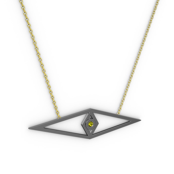 Peridot 925 ayar siyah rodyum kaplama gümüş kolye (40 cm gümüş rolo zincir)
