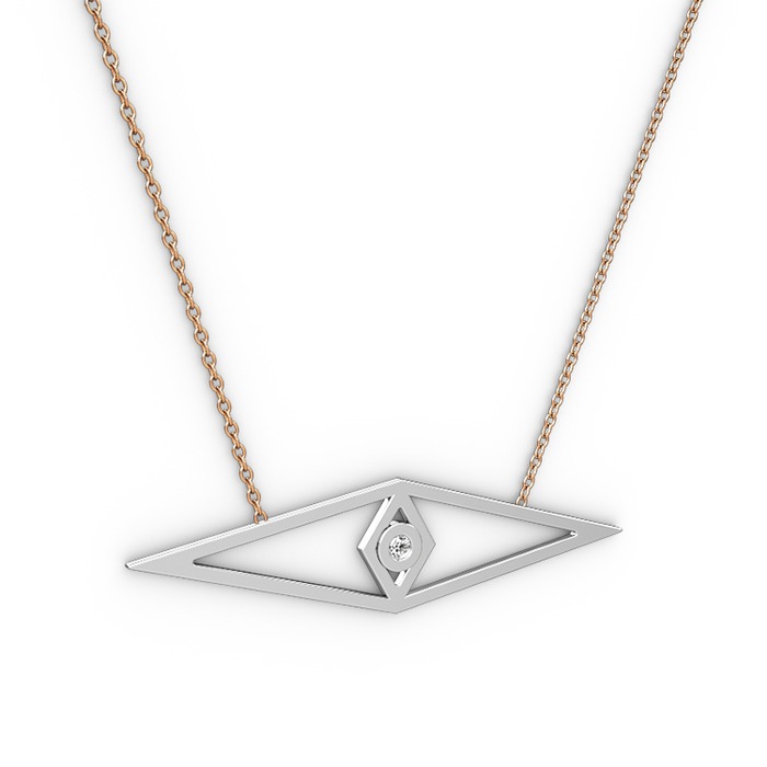 Pırlanta 8 ayar beyaz altın kolye (0.072 karat, 40 cm rose altın rolo zincir)