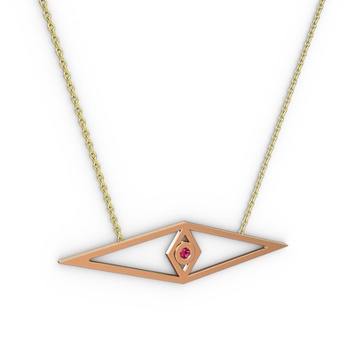 Rodolit garnet 18 ayar rose altın kolye (40 cm altın rolo zincir)