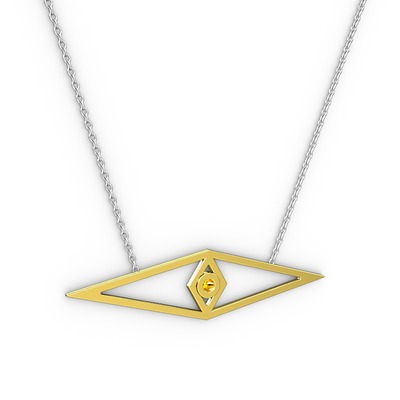 Sitrin 14 ayar altın kolye (40 cm beyaz altın rolo zincir)