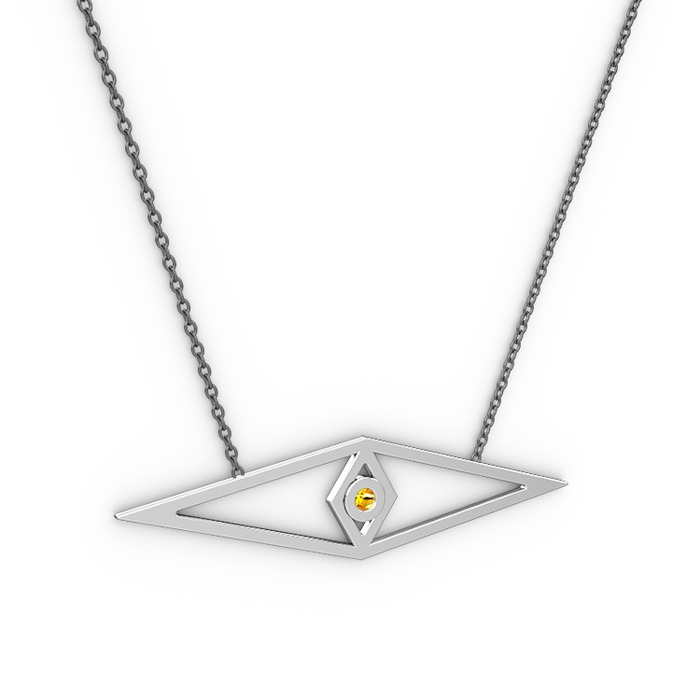 Sitrin 8 ayar beyaz altın kolye (40 cm gümüş rolo zincir)