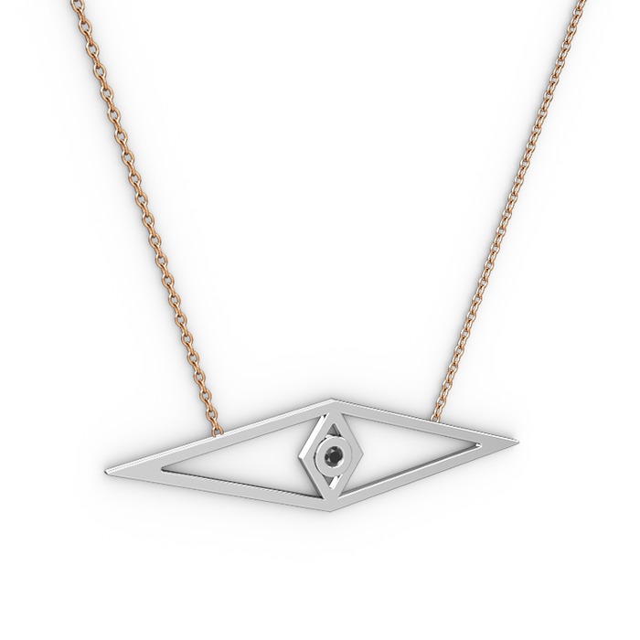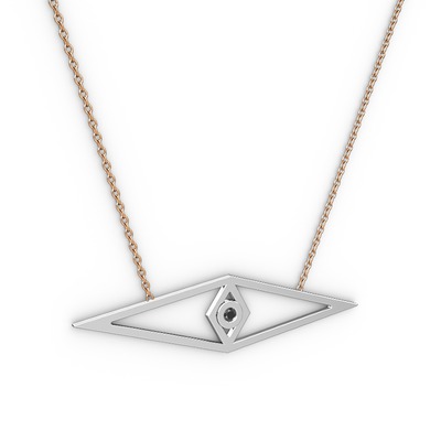 Siyah zirkon 8 ayar beyaz altın kolye (40 cm rose altın rolo zincir)
