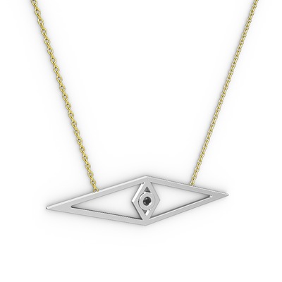 Siyah zirkon 925 ayar gümüş kolye (40 cm altın rolo zincir)