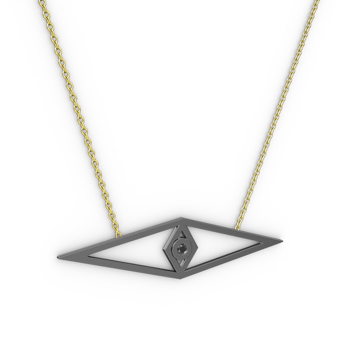 Siyah zirkon 925 ayar siyah rodyum kaplama gümüş kolye (40 cm altın rolo zincir)