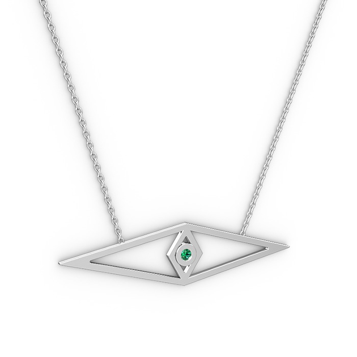 Yeşil kuvars 14 ayar beyaz altın kolye (40 cm beyaz altın rolo zincir)