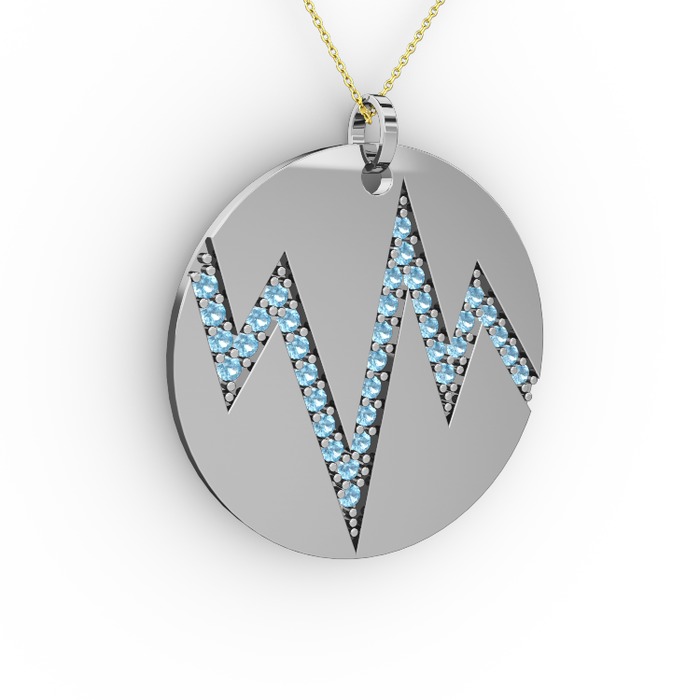 Akuamarin 14 ayar beyaz altın kolye (40 cm altın rolo zincir)