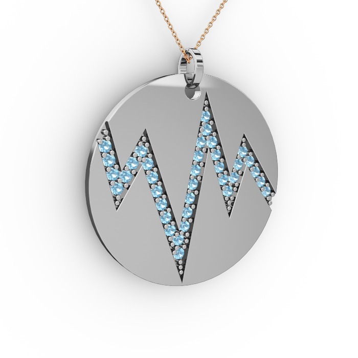 Akuamarin 18 ayar beyaz altın kolye (40 cm rose altın rolo zincir)