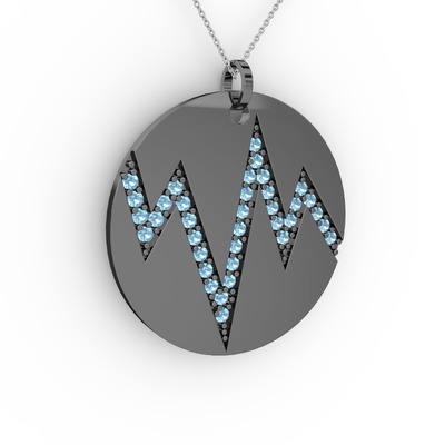 Akuamarin 925 ayar siyah rodyum kaplama gümüş kolye (40 cm beyaz altın rolo zincir)