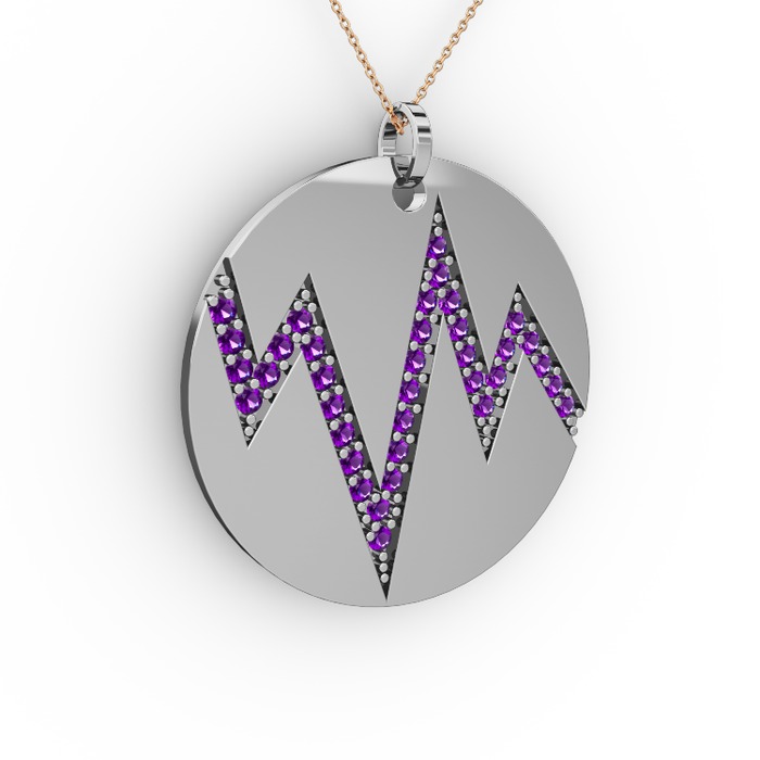 Ametist 14 ayar beyaz altın kolye (40 cm gümüş rolo zincir)