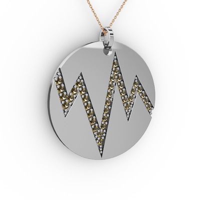 Dumanlı kuvars 18 ayar beyaz altın kolye (40 cm rose altın rolo zincir)