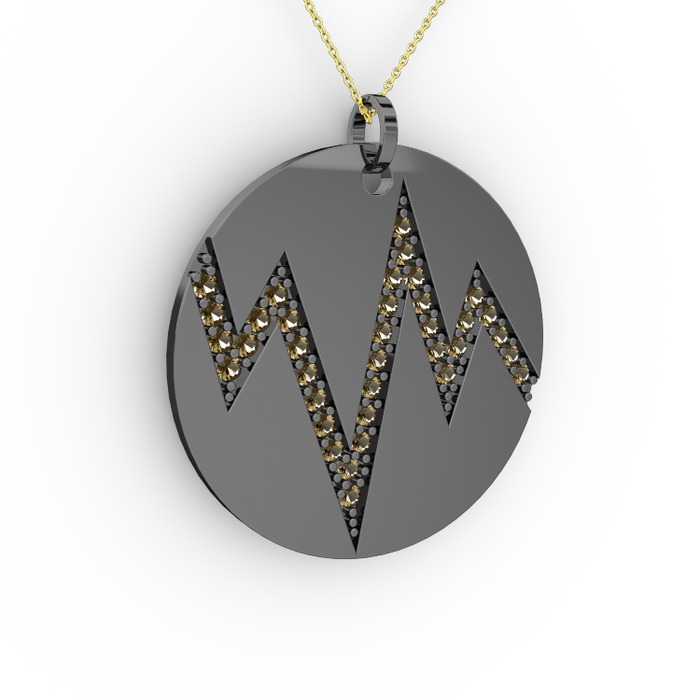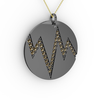 Dumanlı kuvars 925 ayar siyah rodyum kaplama gümüş kolye (40 cm gümüş rolo zincir)